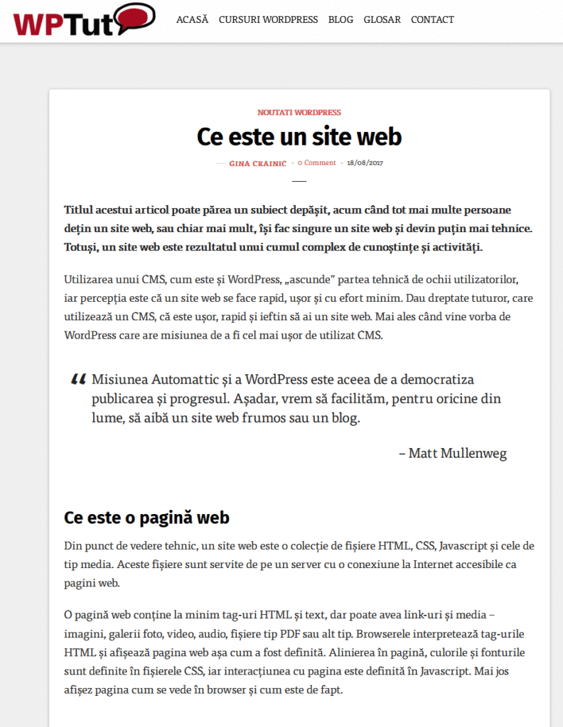 WordPress știe singur cum să construiască pagina web cu toate detaliile tehnice. Noi, ca utilizatori, trebuie doar să inserăm conținut. Și atunci ne putem concentra pe utilizare și pe design.