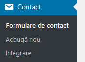 În meniul WordPress din zona de administrare, va apărea meniul cu titlul în română, Formulare de contact, sub Comentarii.