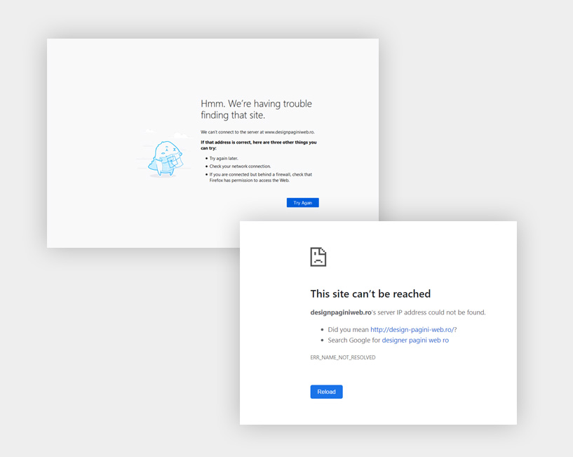 Am avut ceva clienți supărați că le-a dispărut site-ul. La o primă vedere pare să fie serverul de vină, dar în toate cazurile a fost expirarea numelui de domeniu. Când îți apare în browser un ecran cu un mesaj similar cu cel de jos: