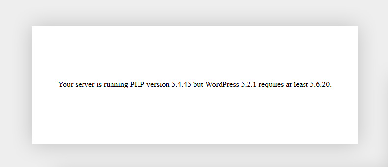 Ar fi minunat să poți testa înainte pe un server de test. Uite ce se întâmplă dacă ai versiunea PHP mai mică de 5.6. Nu se mai afișează site-ul ci eroarea de mai jos, în care îmi spune ce versiune minimă trebuie să am: